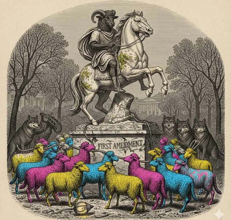 Pasó el tiempo y el rebaño cambió. Ya las ovejas negras no eran una rareza, sino que también abundaban las amarillas, rosadas, pardas y hasta con manchas de varios colores. Tan entusiasmadas estaban las ovejas variopintas con su creciente número que empezaron a ver con ojeriza la Primera Enmienda, puesto que ese era el pretexto que usaban las ovejas más recalcitrantes para criticarlas.