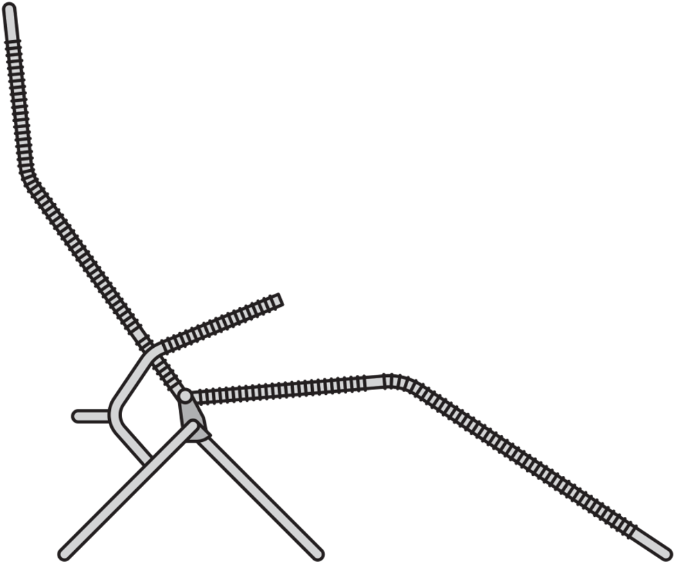 La relajada tumbona de Huldreich Altorfer se compone de cordones de PVC de colores tensados sobre una estructura tubular de acero. Apilable y cómoda, recibió el apodo de Spaghetti chair por sus hebras juguetonas, semejantes a la pasta italiana. Icono de los jardines de posguerra, ha amueblado terrazas suizas durante generaciones.