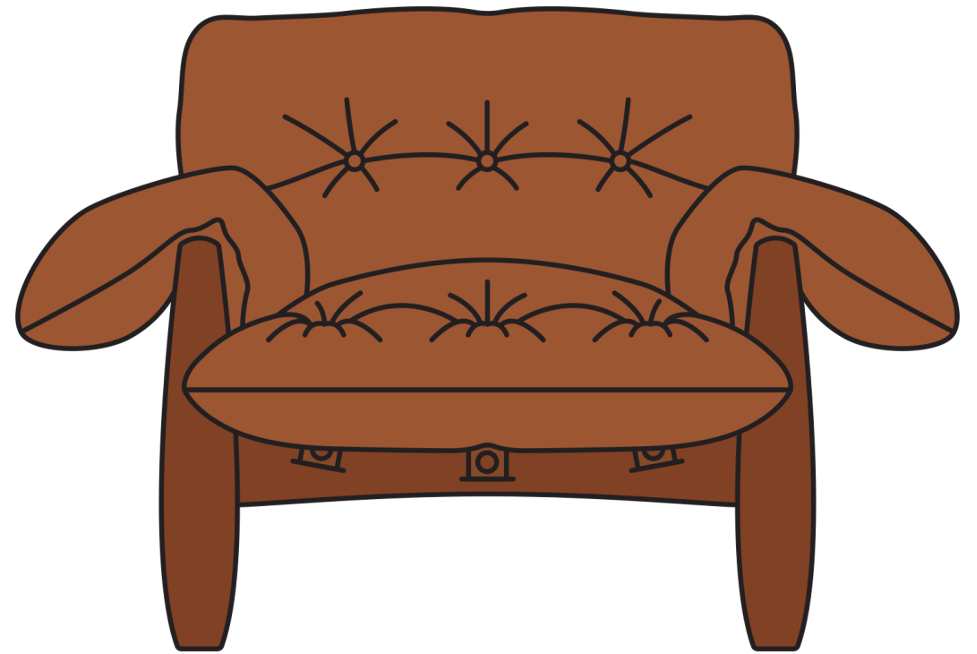 Diseñado en 1961, este sillón es la pieza más reconocida de Sergio Rodrigues. Mole, que significa “blando” en portugués, no necesita traducción: su tapizado de cuero, que se abre desde la estructura base como si fueran alas, es tan cómodo como visualmente atractivo.