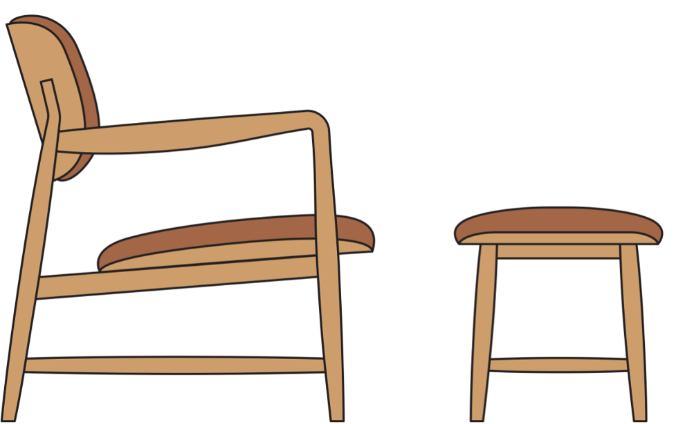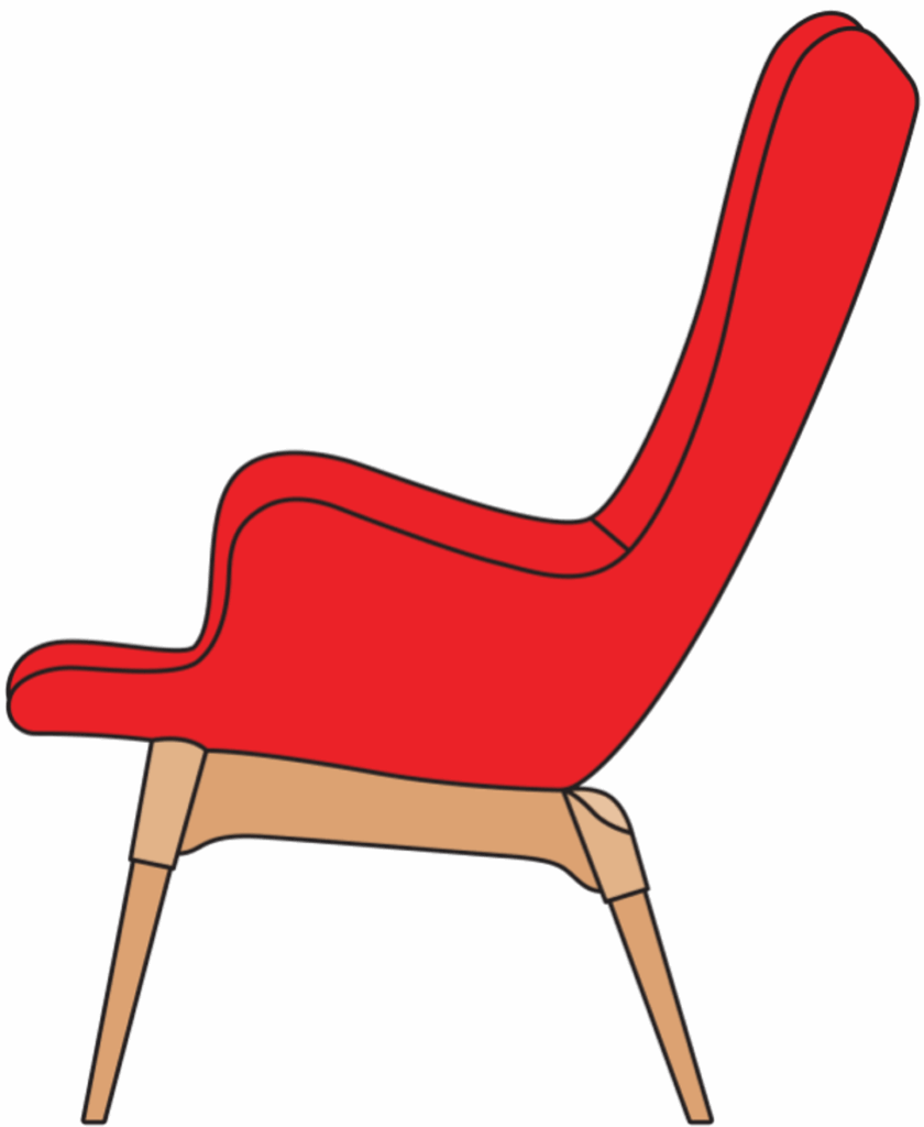 El nombre de esta pieza resume la intención del diseñador australiano Grant Featherston: crear una silla que se adapte cómodamente al cuerpo. El respaldo sigue la curvatura de la columna, mientras que su tapizado mullido y las patas de fresno suavemente inclinadas la convierten en una delicia visual y ergonómica.