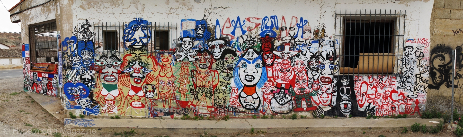 El emplazamiento del edificio abandonado en el que pinta, situado a la salida de Arguedas, en la carretera nacional Pamplona-Zaragoza, le ofrece una posición estratégica, ideal para charlar con los viajeros, que se detienen atraídos por este inmenso lienzo de unos cincuenta metros de largo por dos de alto y que constituye la fachada. Ese contacto con el público ocasional alienta una dinámica de intercambio que impulsa y condiciona su labor creativa.