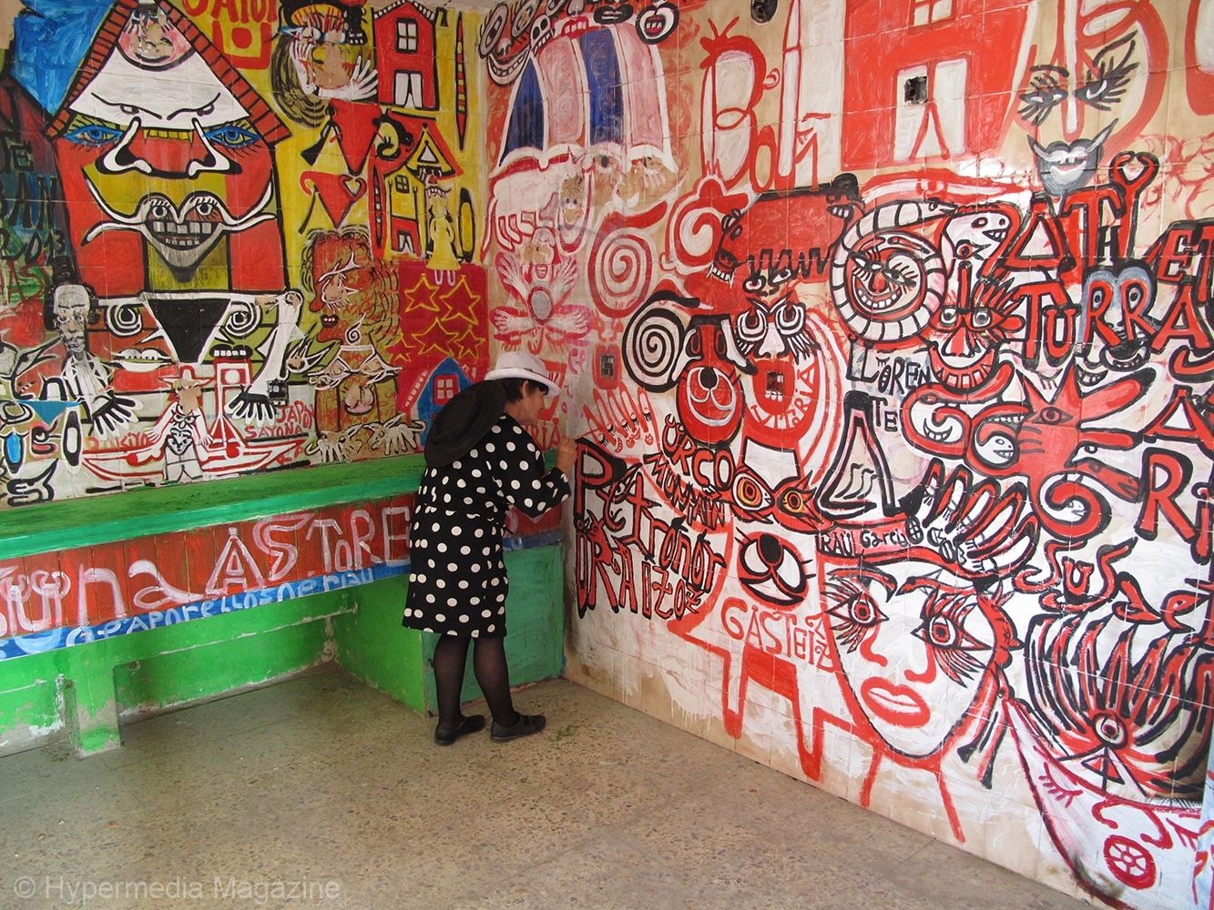 Comenzó a pintar en el año 2000 sobre los muros de este edificio para representar a los que en el pueblo la despreciaban. De modo que expandió sobre las paredes un mundo personal que compensaba la exclusión de la que era víctima y la incomprensión de los que se acercaban con ánimos de burla.