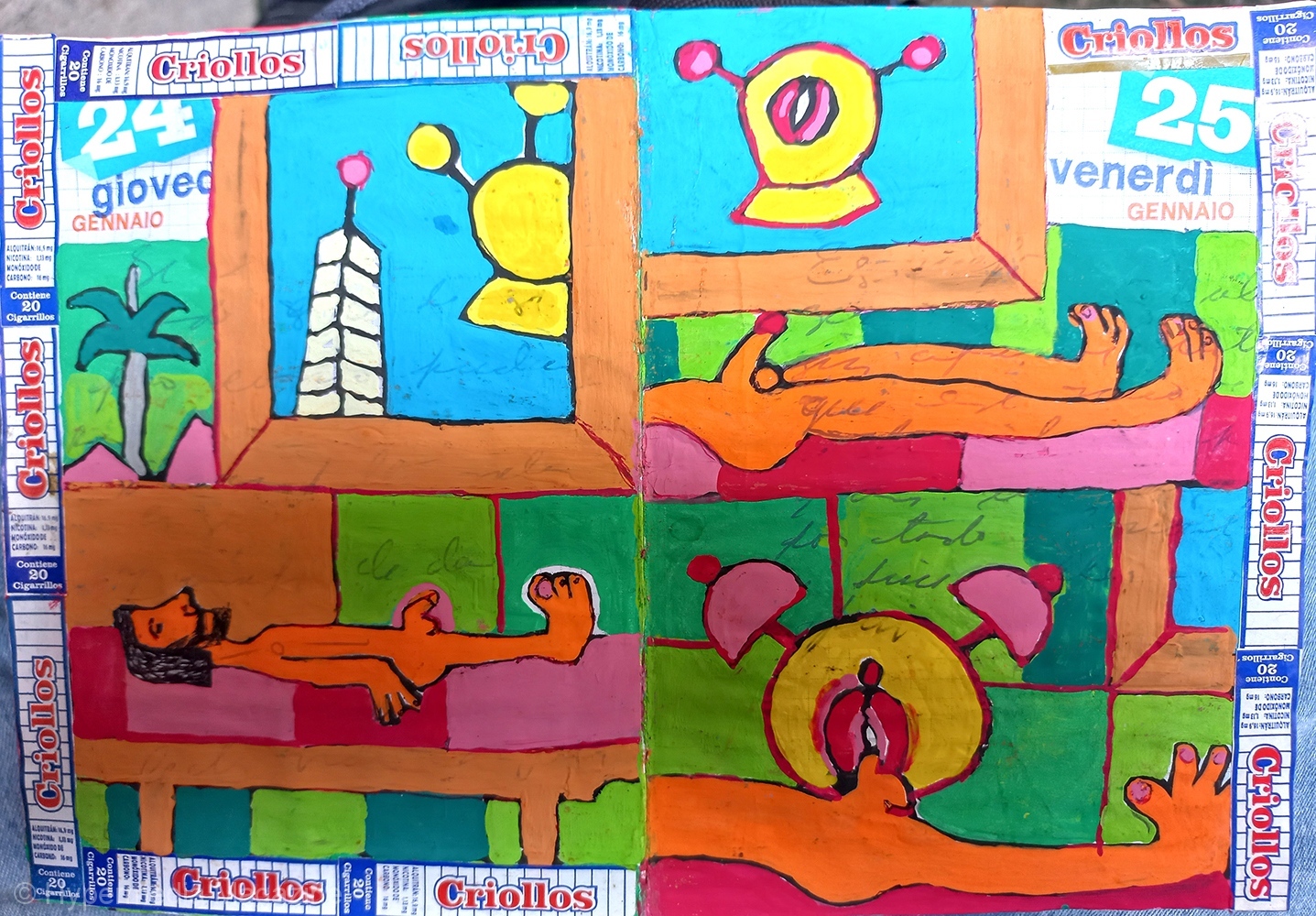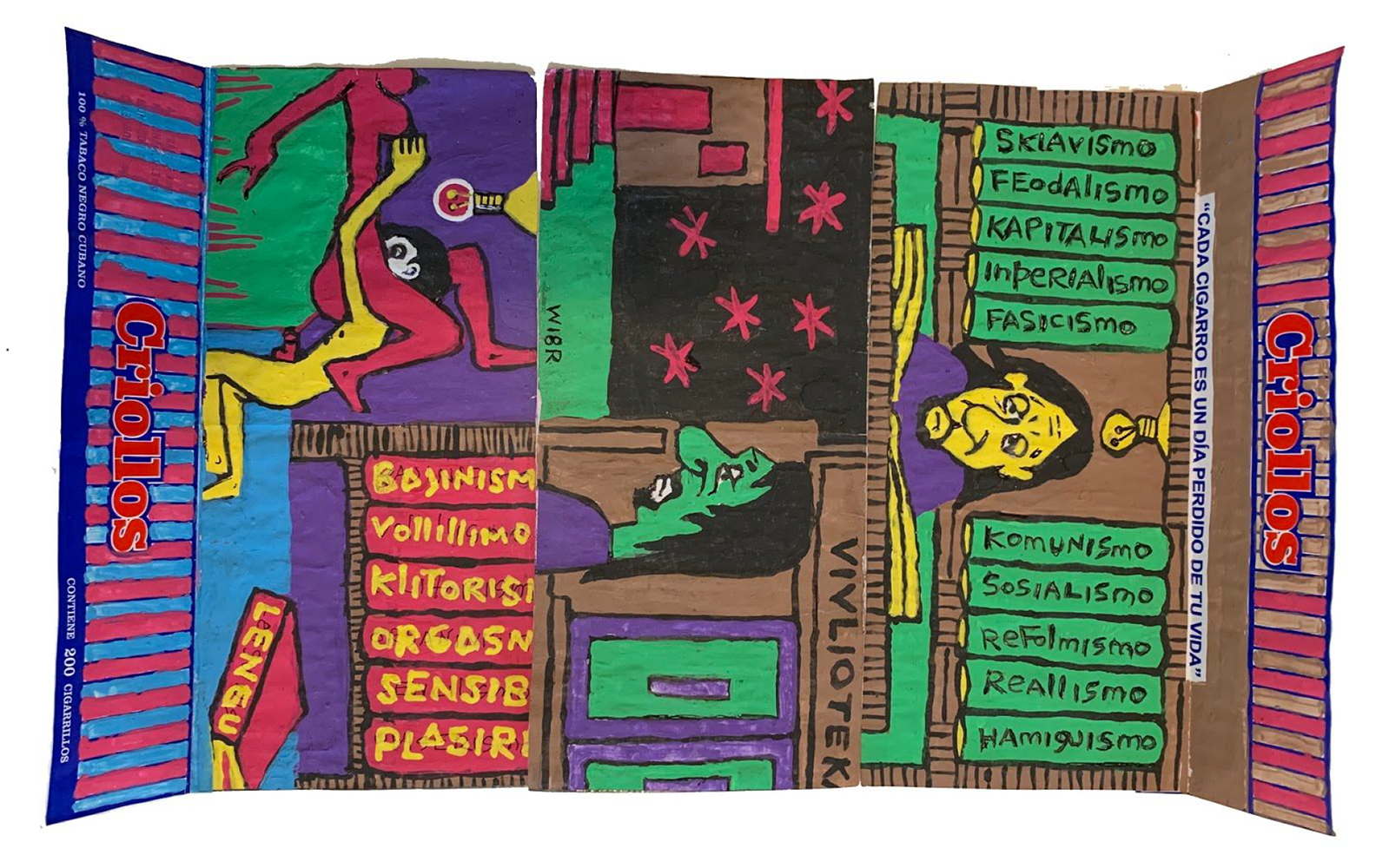 Pero no solo reutilizaba las miserias de un país en decadencia, sino que empleaba lo autorreferencial en armonía con el desdoblamiento de múltiples personalidades y la aproximación a la experiencia colectiva desde el sexo, esta vez con el roce entre lo absurdo y lo ficticio, que posiciona la obra de Guillermo Rigoberto Casola Marcos, Rigo, (La Habana, 1961) dentro de los circuitos especializados del art brut.[1]
