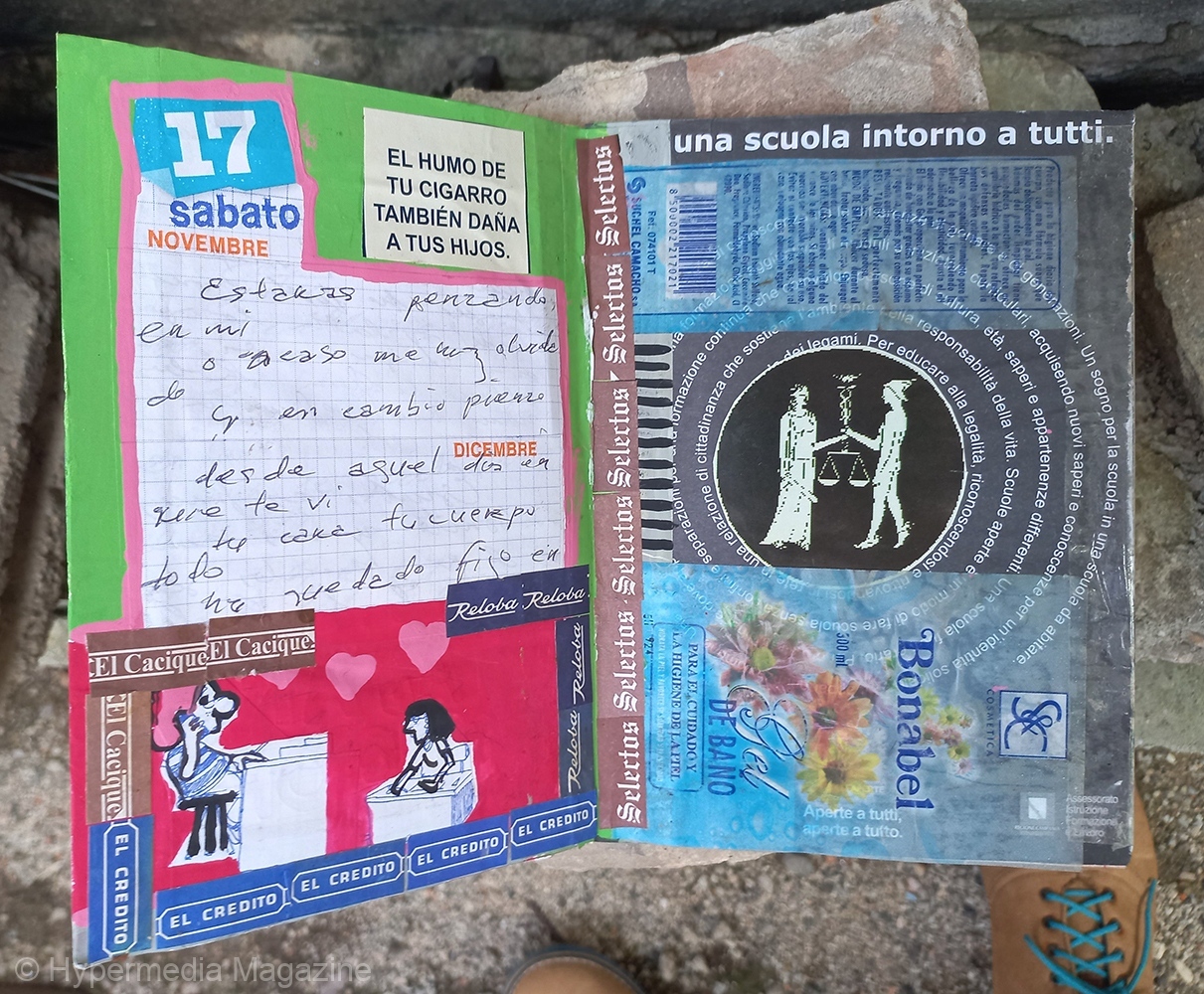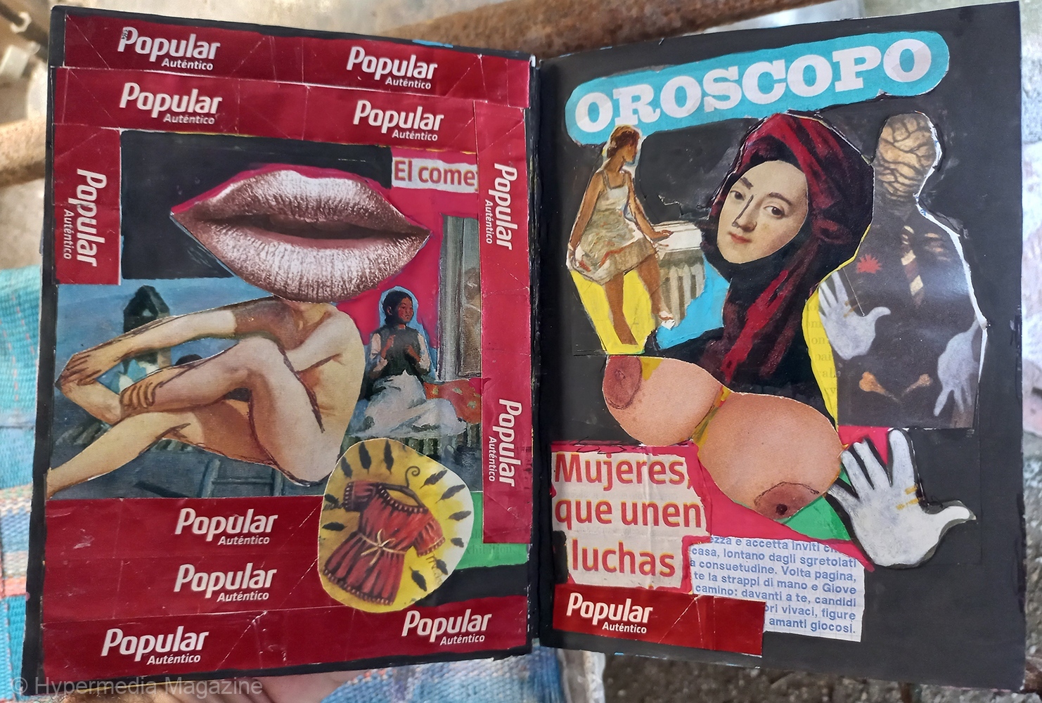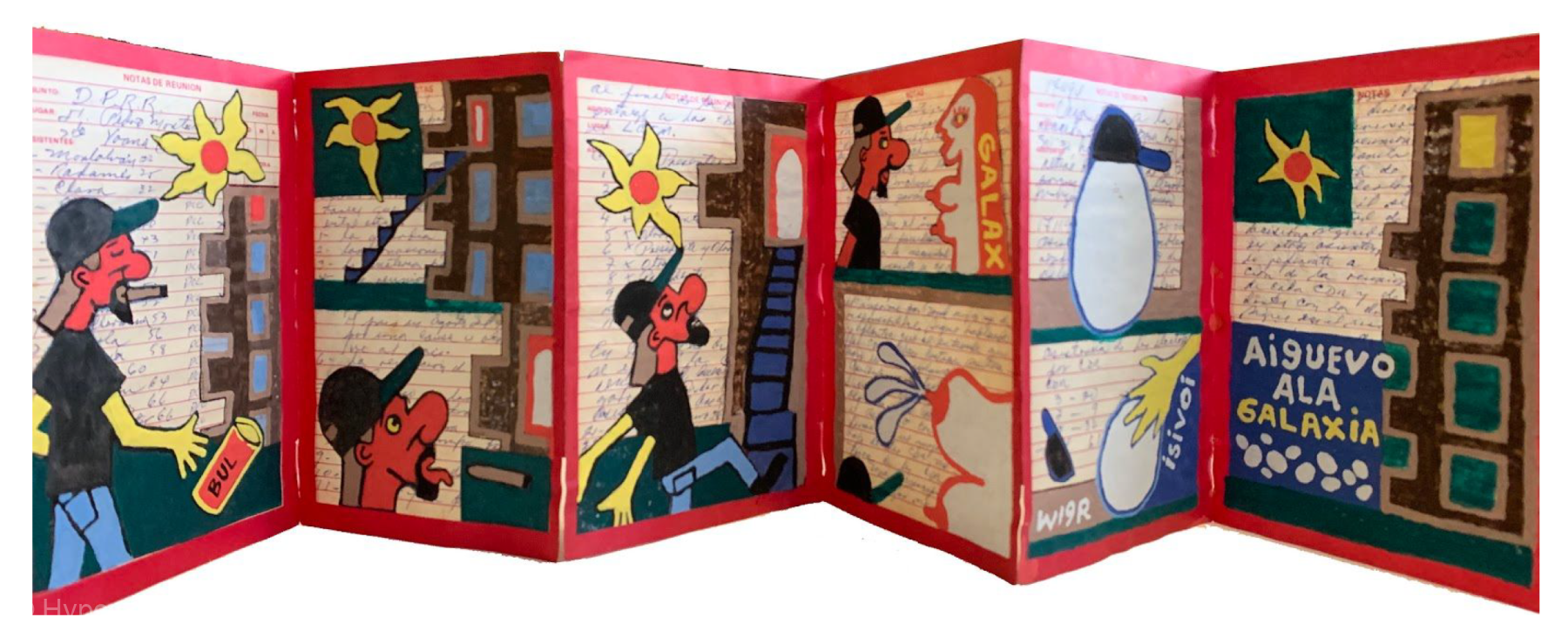 Los libros pueden tener de cinco a diez páginas. Y los acordeones entre cinco, seis y diez imágenes. Los hago para variar y no caer en la monotonía del trabajo plano. Son formas de trabajo sin motivo específico, para cambiar el formato y no aburrirme con lo mismo. Me mata la monotonía.