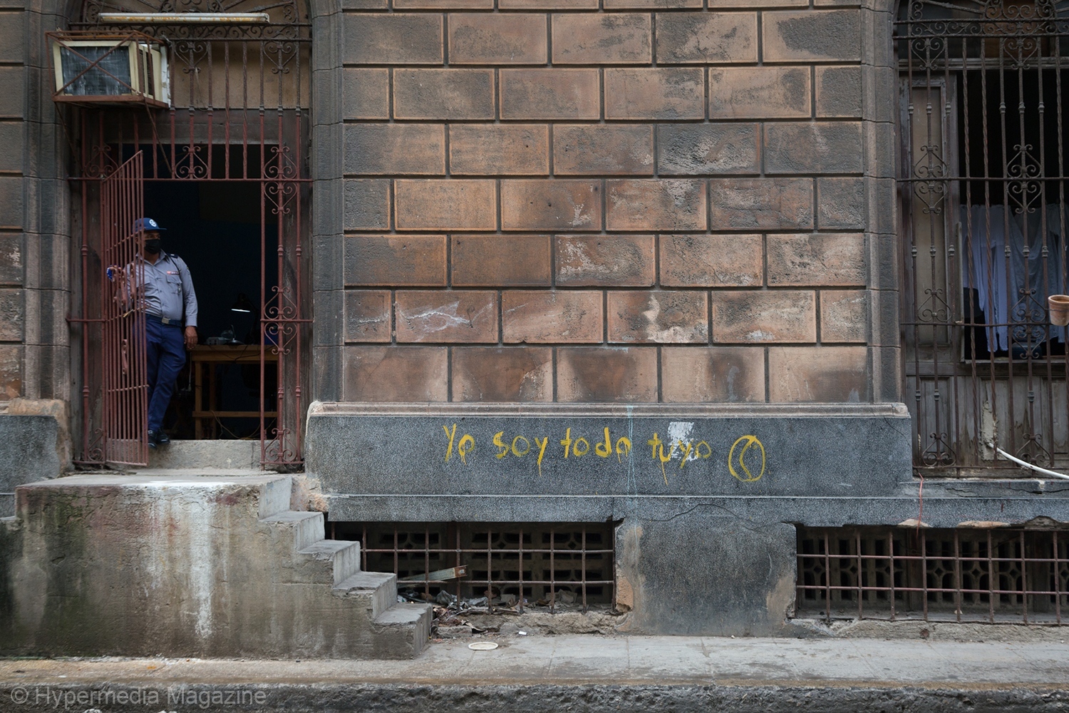 Al final del desplazamiento, lo modificado soy yo. Hago una foto al grafiti para apropiarme de aquello que no escribí, pero al hacerla estoy escribiéndolo y todo el que vea mi foto se modificará. Todo el que vea mi foto habrá escrito TE AMO en una pared de la ciudad, de la misma manera en que yo estoy escribiendo TE AMO, sin haberlo escrito.