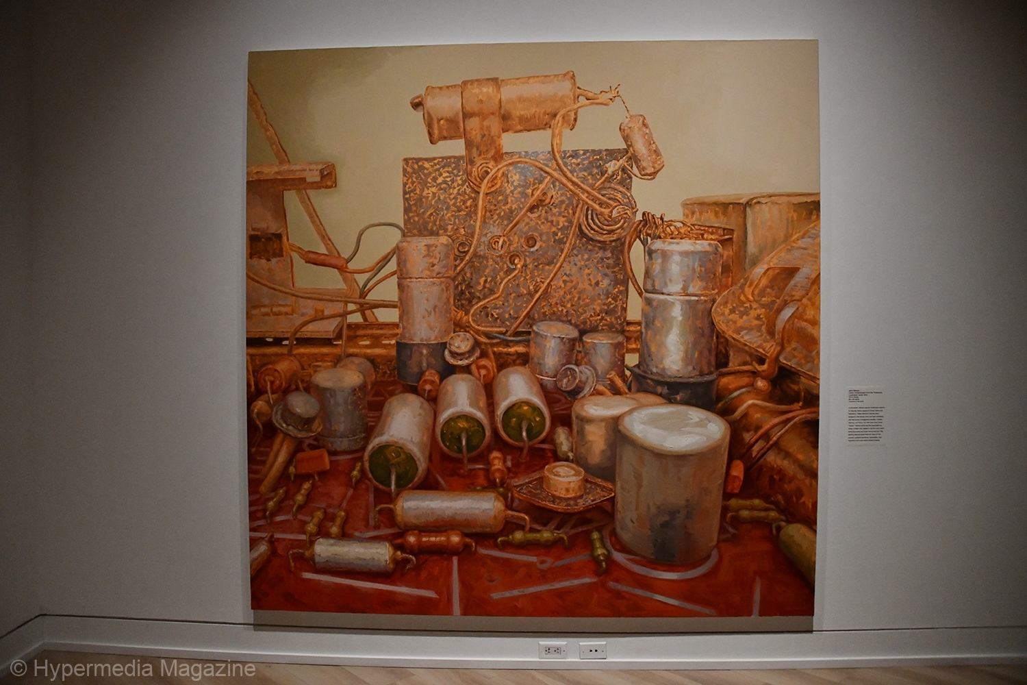El otro descubrimiento es la escala. Si antes sus obsesiones se anclaban en el tamaño natural de cada objeto, las cinco obras más recientes de la exposición (72 x 60 pulgadas cada una, dos apaisadas, tres verticales) representan las entrañas mecánicas de sus radios de tubos o transistores en dimensiones monumentales.