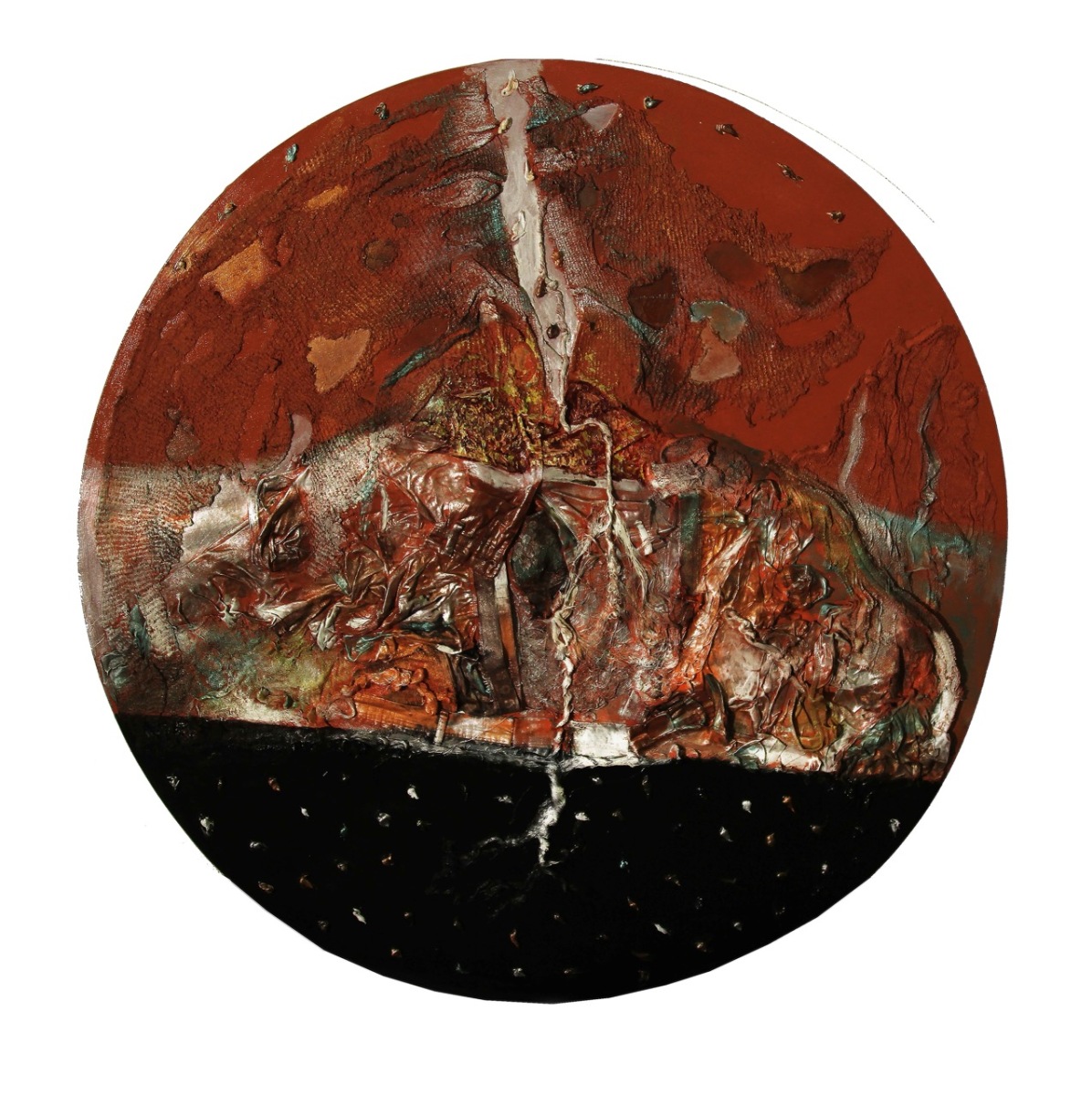 Desde el primer encuentro con la obra de Jesús Lara Sotelo, uno tiene la sensación de estar entrando en un mundo donde la materia está viva, convulsa, y en constante transformación. Su estilo no responde a una fórmula fija ni a una tradición reconocible al primer golpe de vista. Al contrario: es una estética híbrida, visceral y polifónica que desborda cualquier etiqueta.