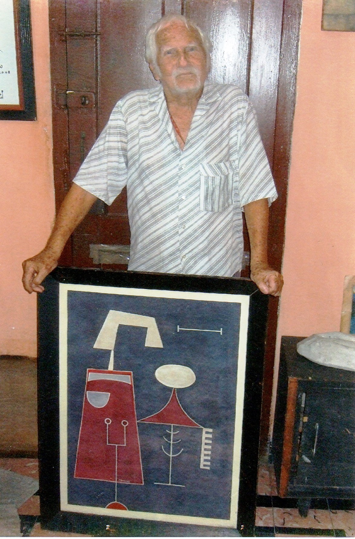 Jorge Camacho en fotocertificado de Fausto José del Castillo Cruz para la obra en la KGJ Colección“Figuras en la noche”, plaka sobre cartulina, 1995, 65 x 55 cm (Ref. 6).