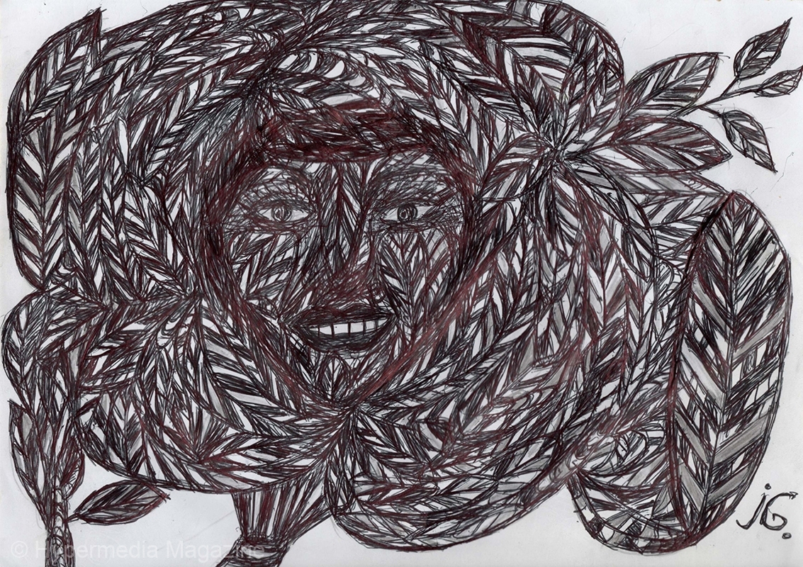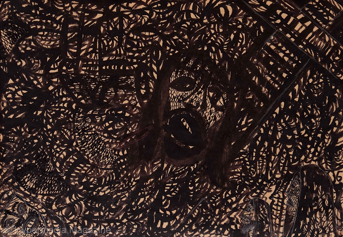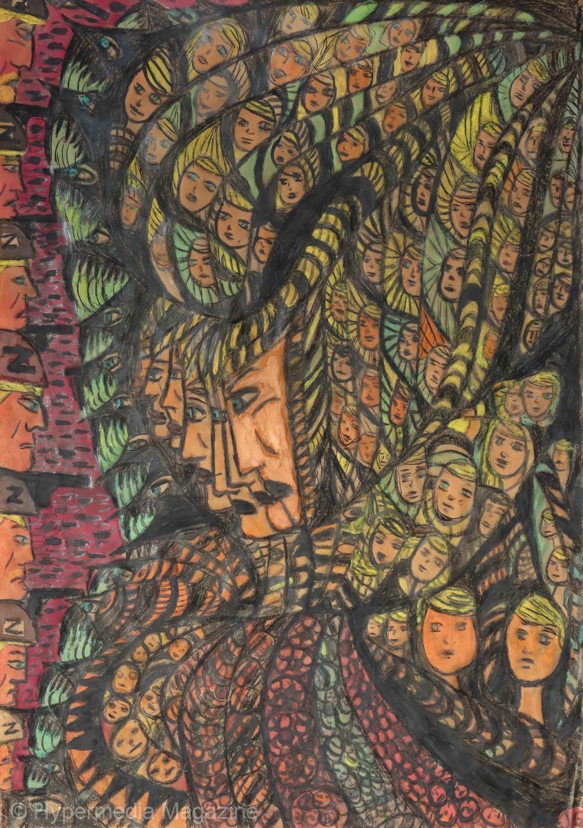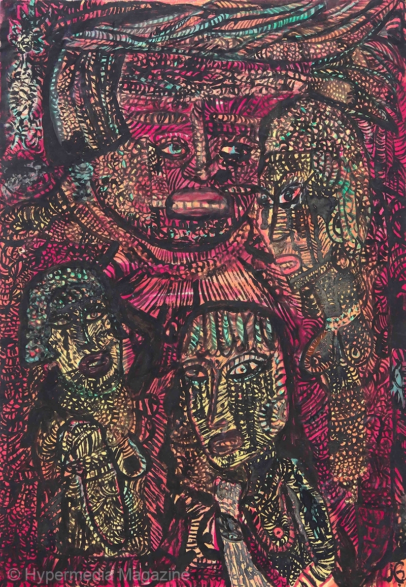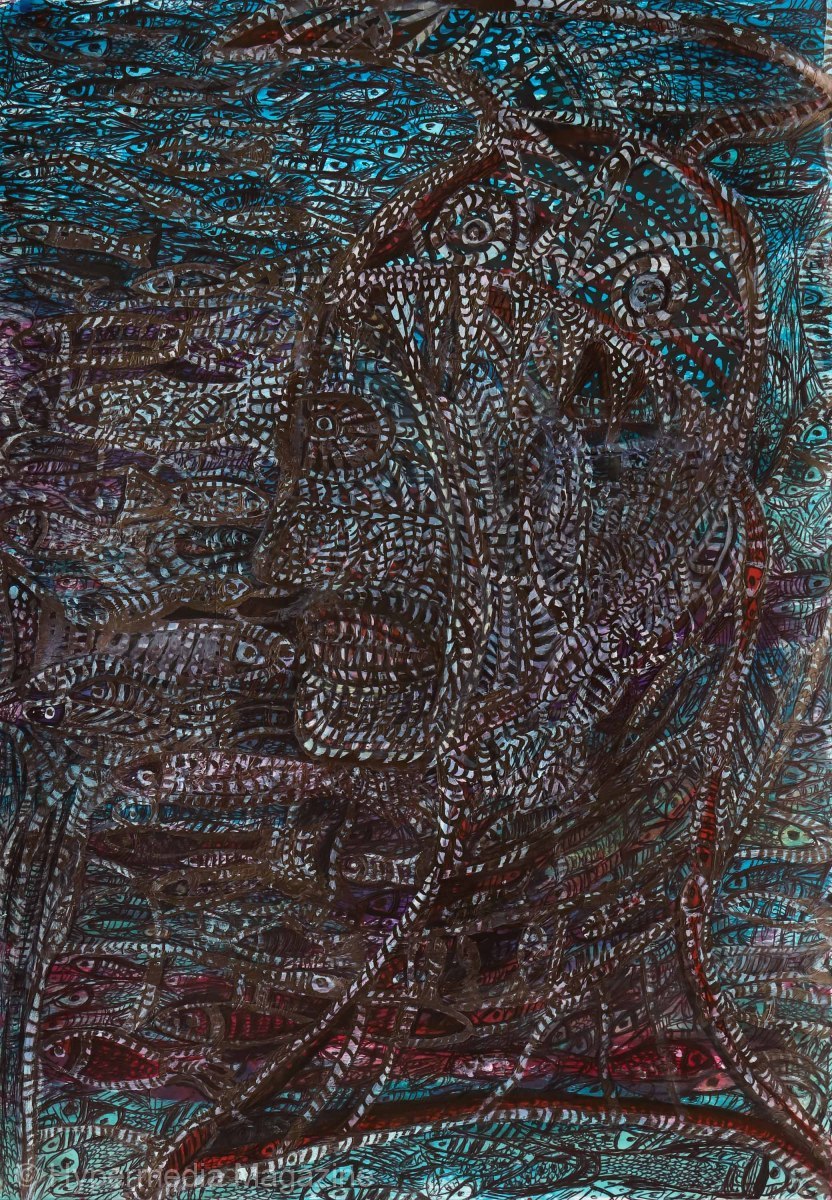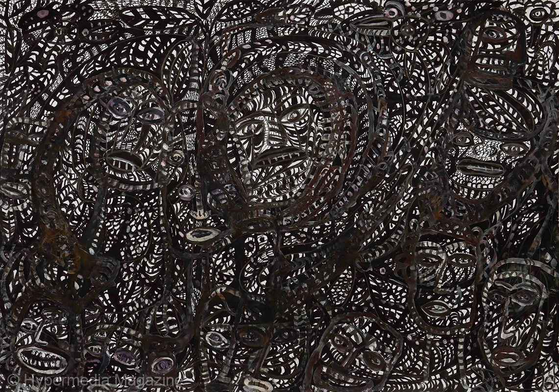 Los dibujos que tienen rostros son porque mi vida ha estado llena de intrusos. A los 10 años. A los 15 años. En estos dibujos yo reflejo un poco toda una serie de situaciones mías. Yo soy bipolar. A partir de los 15 años me diagnostican como maniaco-obsesivo-compulsivo-ansioso-depresivo, y me cayeron muchas crisis. Me vi perdido.
