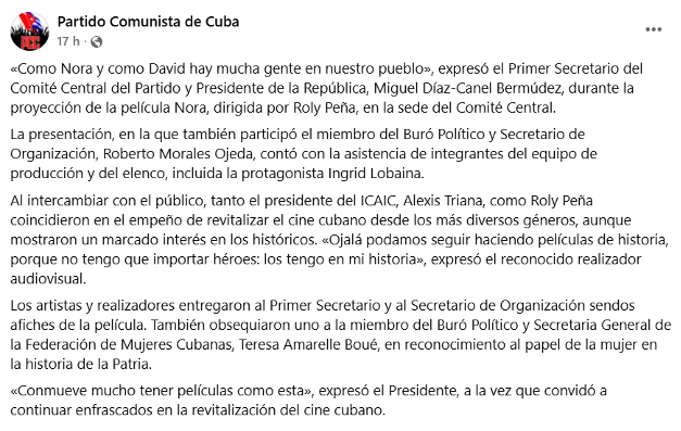 Fuente: muro de Facebook del Partido Comunista de Cuba (2025).