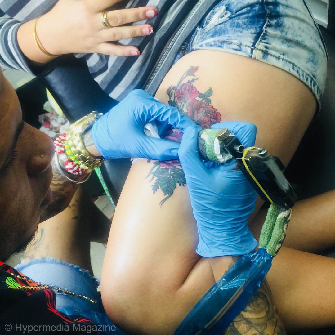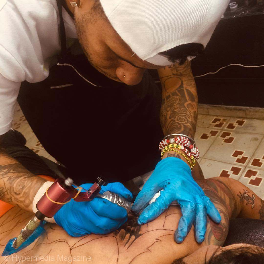 Todo el mundo sabe estas historias. No conocía a nadie aquí en Cuba que vendiera materiales. Recuerdo que pasaba mucho trabajo. Hoy en día todo está muy fácil. Los muchachos empiezan a tatuar y dicen: “Yo quiero ser tatuador”, compraron una maquinita, un set de tinta, fueron a Internet, exploraron cómo se hace más o menos un tatuaje y ya. En una semana son tatuadores. En mis tiempos era un poco más complejo.