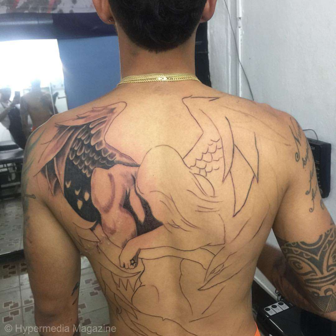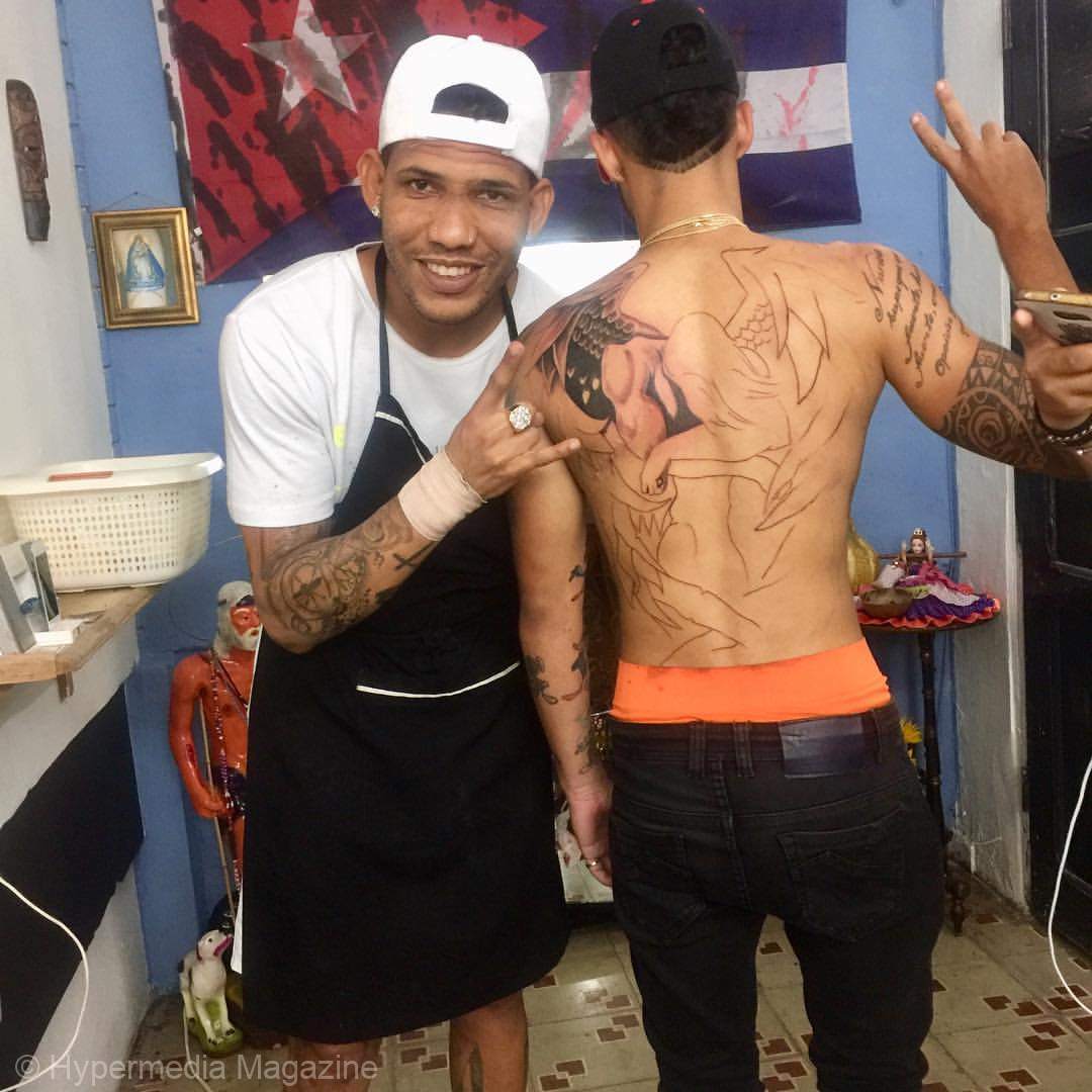 Los muchachos ahora se compran una máquina, un poco de tinta, una impresora, aunque no saben nada de teoría del color ni de dibujo, y en tres días son tatuadores que no saben tatuar. Es una locura. Tatúan por un hobby. Entonces llega un cliente que lleva cierto tiempo, dedicación, entrega y le das el precio; pero te dice: “Na’, me voy con aquel que me va a hacer lo mismo”; aquel lleva tres días tatuando porque está en la moda tatuar y cobra tres pesos. Pero nunca, nunca es lo mismo.