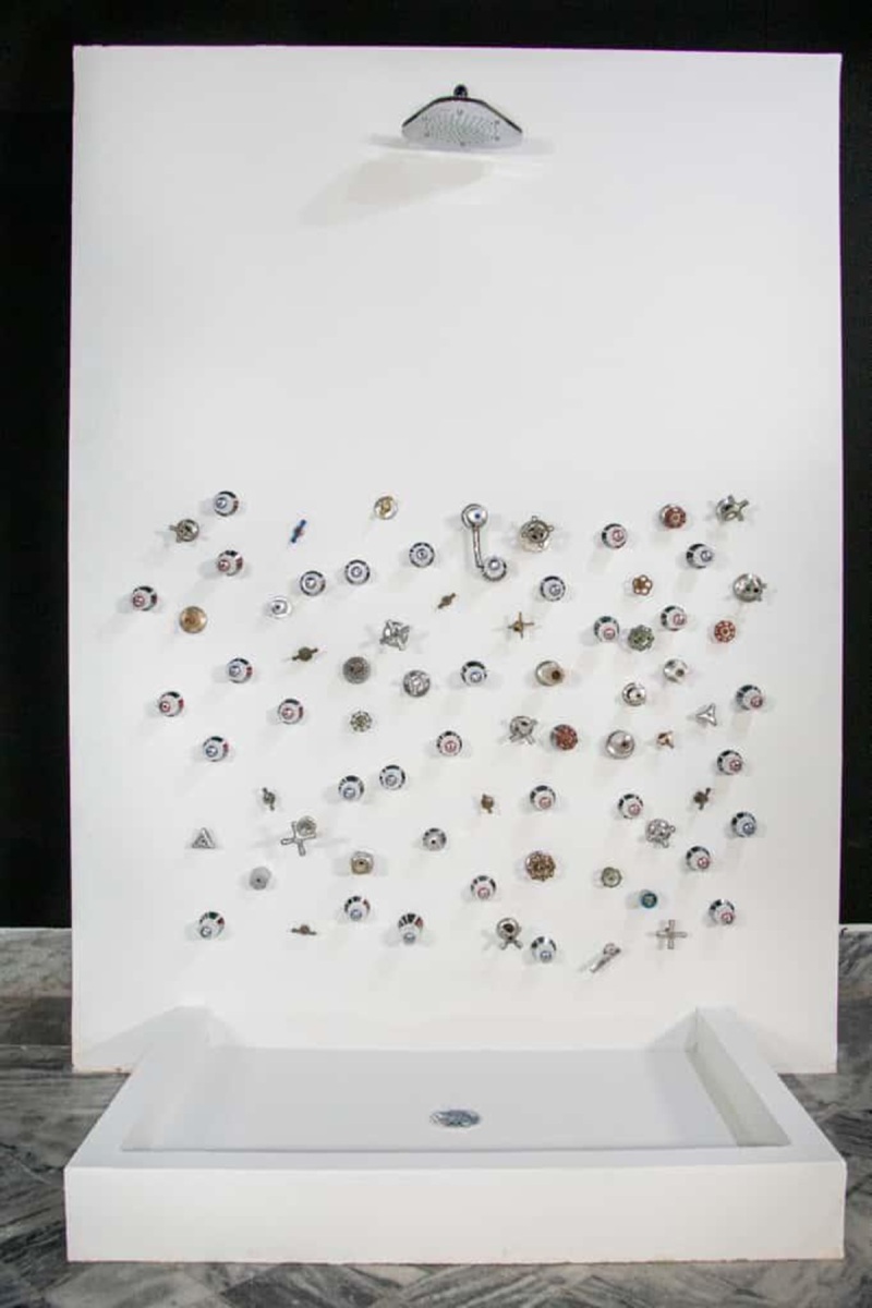 Las miradas, en el contexto de esta exhibición, se cruzan con una ducha a escala real que dispensa una trampa y organiza una gran encrucijada. En lugar de un grifo/llave descubrimos un centenar de ellos. La idea de escoger, de seleccionar, de decidir se vuelve subversiva en un país donde la elección nunca fue una opción; donde la imposición ha sido y es su sino.