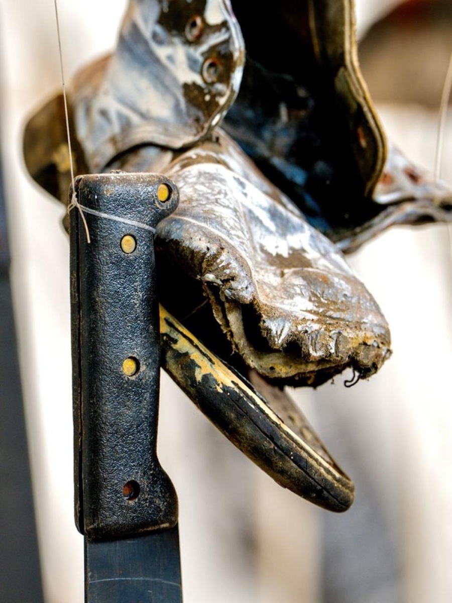 Aquí cuelgan (a modo de lluvia, pero también de lágrimas) artefactos que se cargan de un tremendísimo poder simbólico y que remiten a la propia construcción del relato histórico de la nación y de la épica emancipatoria de todas las revoluciones (y revueltas) de las que hemos tenido noticias.