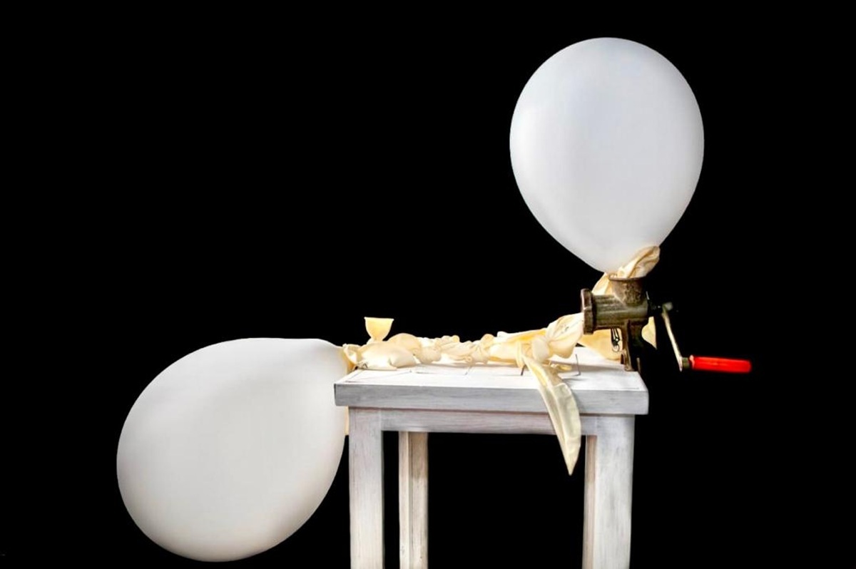 Esa desesperanza, en otro tono, se replica en una pieza monumental como Vacío. Un contenedor pintado de negro en su interior y del que salen y se supenden miles de globos de diferentes colores recuerda, por qué no, una suerte de “salida del closet”, una especie de estampida hacia la luz y hacia la felicidad.