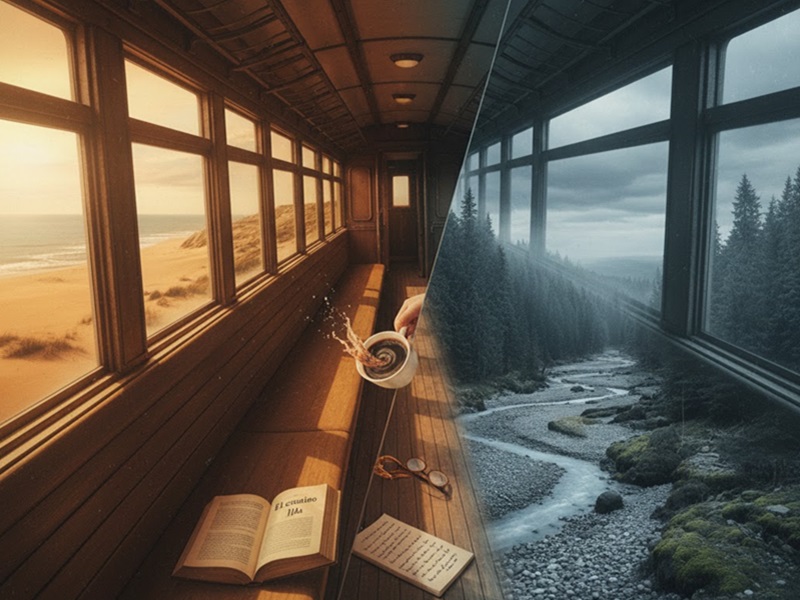 Hice un muy largo viaje en tren el último día de junio de 2025. Comenzó en Normandy Isles y tuvo como destino un pueblito llamado Willimantic. Pongamos que se produjo, o produje, un tránsito desde el arenal en la duna de una playa ─a diecisiete minutos de la pequeña habitación donde estuve rentado─ hasta la gruesa grava de un río, a diecisiete minutos de un apartamento con el piso notablemente inclinado.