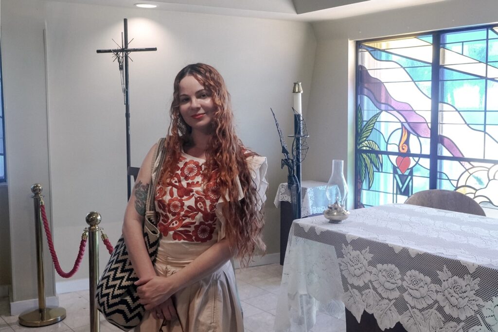Una monja estaba sentada en la última fila, justo al borde del pasillo que lleva al altar. Carla le preguntó si había notado más presencia de cubanos en los últimos meses. La monja le dijo que no podía contestar dentro del templo.