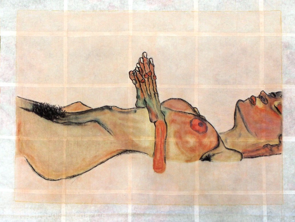 De la serie Cosas de hembra, Egon Schiele, Técnica: maquillaje sobre toallas húmedas.