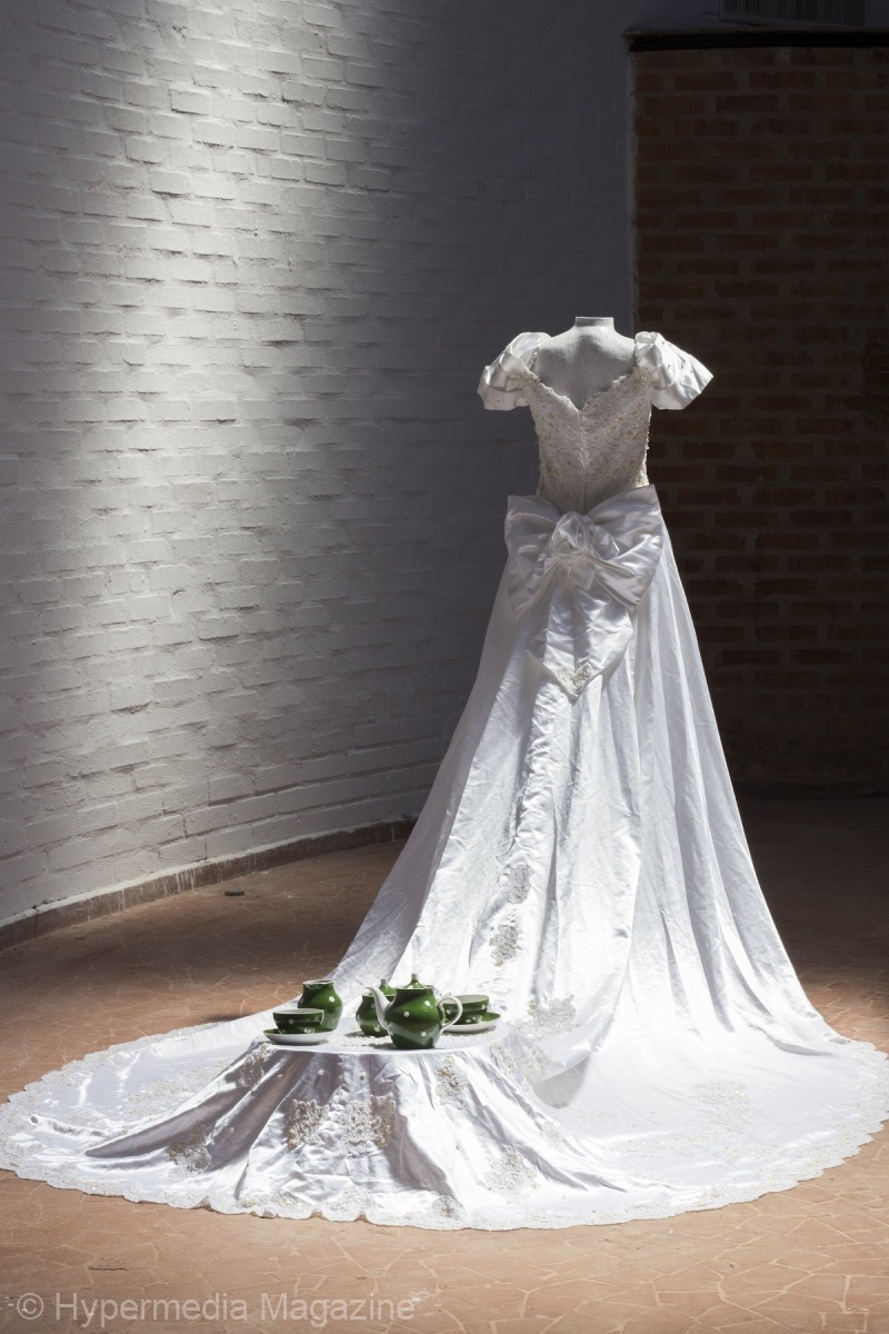 La zona donde venden telas es un barrio tipo bazar donde encuentras de todo en cantidades abismales, dicen que los dueños de todo son judíos, sí que vi a muchos de ellos caminado por aquellas cuadras de Buenos Aires con su indumentaria que no pasa desapercibida. Se me convirtió aquel descubrimiento en infinitas cuadras de telas y más telas, estaba abrumada, palpé todo tipo de tejidos y telas preciosas. Confeccioné un vestido que inunda el espacio…, te invito a que entres pero descalzo, que agredas mi reposo, mi intimidad, pero mi presencia impone un límite.