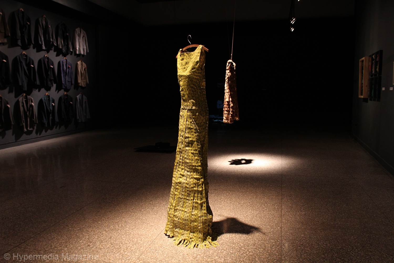 Colecciono mucha indumentaria y no todo es de mujer; tengo piezas en proceso con camisas de mi abuelo y de mi padre. Para esta instalación trabajé con sacos de ambos y otros que compré en tiendas de ropa reciclada, quería vestir una pared gigantesca. Veo la prenda y tengo la idea, pero hasta que no la ejecuto en papel la idea no cierra.