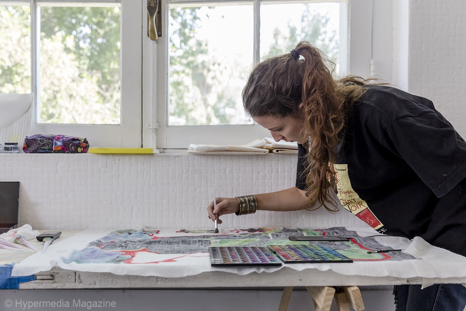 El edificio se dividía entre el Museo de Bellas Artes y el Museo de Arte Contemporáneo. Y en esta segunda sede fue donde hizo la residencia. Un sitio alejado del centro, donde la acompañaba únicamente un conserje con su perro guardián color heno, Rucio, y unas pocas curadoras.