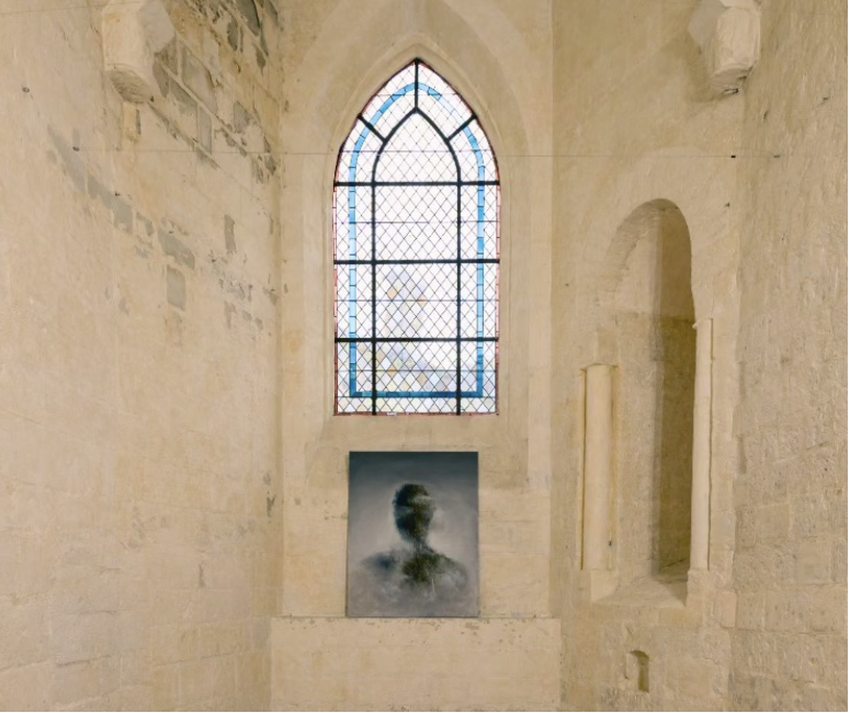 En los cuadros mismos que colocas en diversos espacios de la capilla, tus telas muestran paisajes de un mundo inasible, casi siempre en el espesor de la neblina, y en los que domina el color blanco; un blanco que pudiera tomarse como afirmación del mutismo de la pintura, que es un no-lugar de espera para abrir la experiencia a los lugares del mundo. Sé que en tu mirada pictórica no te es ajeno el blanco vacío, que es condición de posibilidad para poder existir en el colapso del Antropoceno. ¿Qué es para ti el paisaje en un mundo contenido como es el espacio de Collégiale Sainte-Croix?
