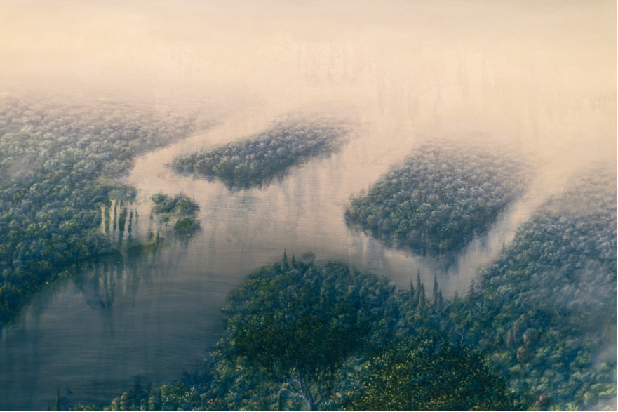 Ese blanco es potencialidad pura, todo lo que se puede crear e imaginar parte del vacío. Me inspira mucho la pintura oriental en ese sentido, donde los espacios en blanco de las sedas y papeles, a veces, son mucho mayores que los espacios ocupados por las figuras. Es el luminoso vacío búdico, el vacío del Tao. También pudieran leerse como simples brumas, que en la naturaleza son nubes = agua en forma de gas, elemento indispensable para que el bosque pueda continuar su existencia.