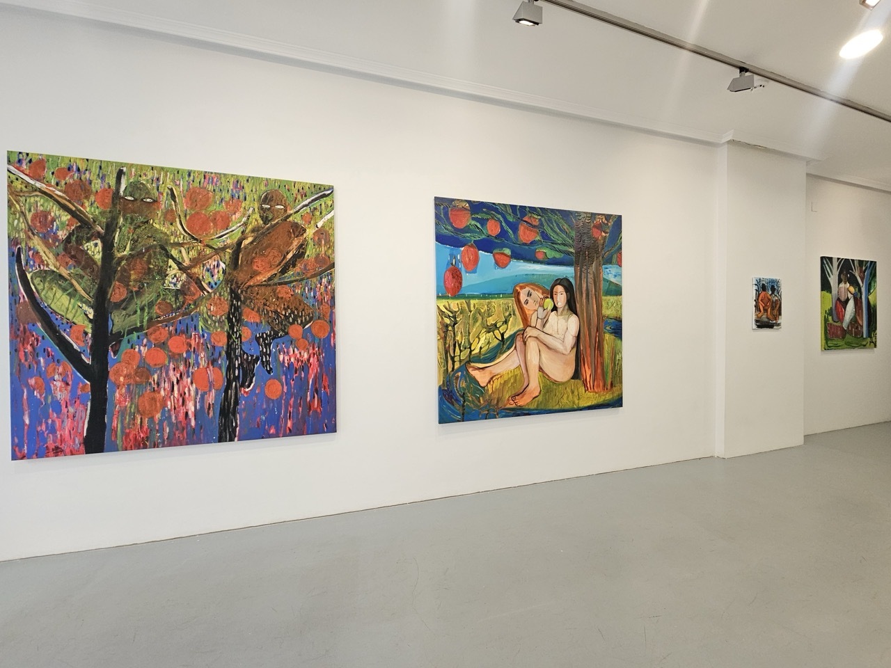 Esta obra hace referencia a ese patio construido durante ese ir y venir, donde la naturaleza se transforma a causa de estas injerencias. Esta misma obra, además de proponer un árbol fértil forzado para engendrar todos estos frutos, en una escena que denota el Paraíso, también toca la imagen bíblica donde Eva y Adán están debajo del árbol del fruto prohibido. Representados desde una estética primitiva, casi naif, deja ver la manera en la que se filtra el tema religioso desde un sincretismo que no conoce fronteras.