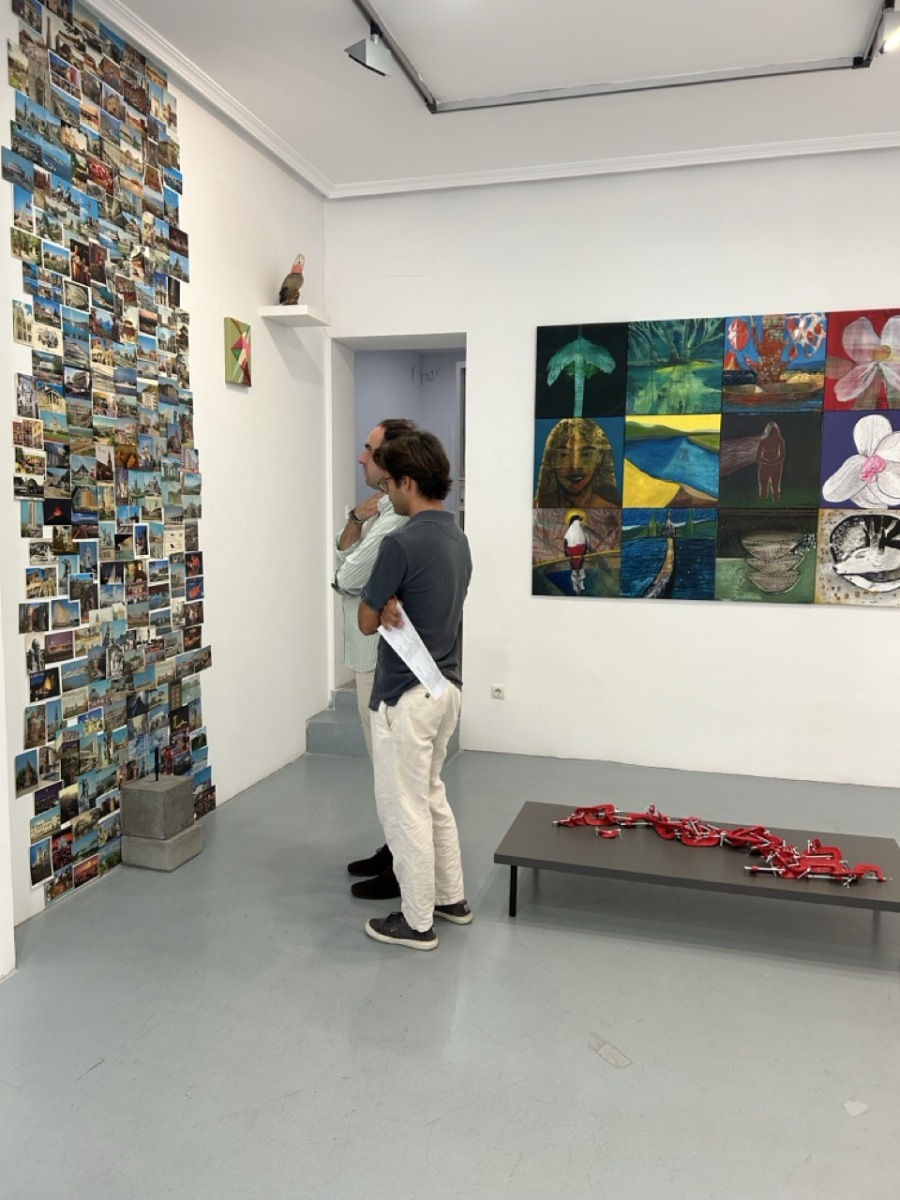 No obstante, también me interesa acercarme a estas cuestiones de manera más sutil o indirecta. En otras obras, por ejemplo, recurro a la carga simbólica de ciertos objetos que remiten inevitablemente al viaje y al desplazamiento: portafolios, pasaportes, postales conmemorativas, sellos de correo o guías de turismo. Son elementos cotidianos que, en la medida en que señalan un tránsito —sea físico o imaginario—, introducen siempre una distancia entre el objeto y aquello que lo convoca.