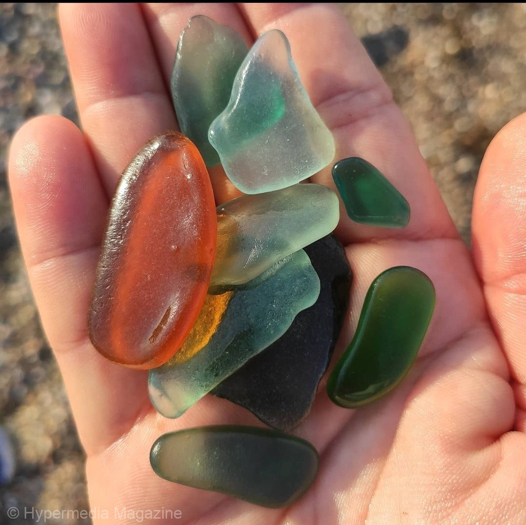 Recién supe que, a esto de recolectar vidrios, trozos cerámicos, retazos de criaturas de mar, se le llama así, y que tiene muchísimos adeptos en el mundo, tienen hasta un festival, varias revistas del tema, libros. Al entrar el plástico a nuestra vida, el vidrio de mar se ha ido convirtiendo en algo único, casi exótico, muy usado ahora en joyería. Es curioso que, viniendo de la arena, regrese a ella ahora para una nueva metamorfosis. Ahora puedo, gracias a las redes sociales, compartir por primera vez con almas de otras realidades las mismas cosas que me apasionaron siempre, mis ídolos excavados. Y tienes razón, puede ser llamado otra forma de poesía.