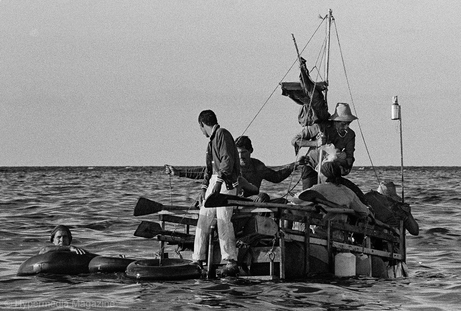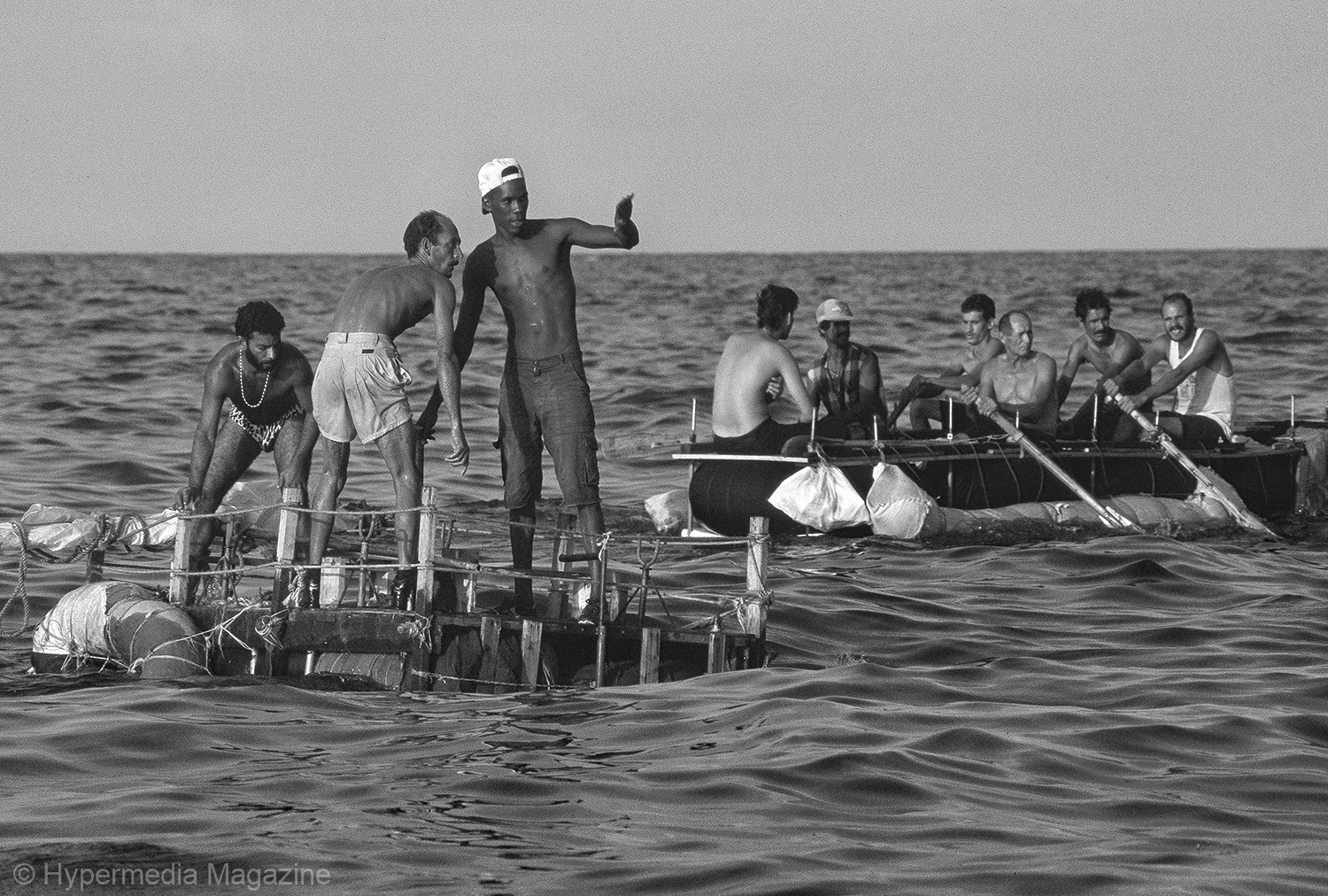 Después están los barcos que llegan y se van, navíos de toda clase, a través del tiempo. Cuba es La llave del Caribe: una parada —una partida necesaria—, una encrucijada abierta a todo destino. Norte, sur, este, todos, incluso Roma. Gente que viene y que va, rostros de todas partes. Carabelas españolas, mástiles y cañones ingleses, barcos negreros y naves filibusteras. Vapores repletos de europeos, insalubres bodegas atestadas de asiáticos. Cruceros americanos, cargueros soviéticos, lanchas torpederas, botes guardafronteras; y luego, están las balsas. Gentiles y frágiles, balsas de viejos maderos y velas de harapos, infladas de ilusiones, tejidas de esperanzas. Músculos y mareas, vírgenes y estampitas. Balsas que cruzan el muro azul sobre la blanca espuma de las crestas. Algunas arriba, bajo el sol hiriente, la brisa y la incómoda sensación del salitre en la piel. Otras abajo, en el frescor y la levedad, en el limbo azul. Balsas que viajan sin boletos de regreso, poca isla para tanta búsqueda, muchos sueños para tanto mar.