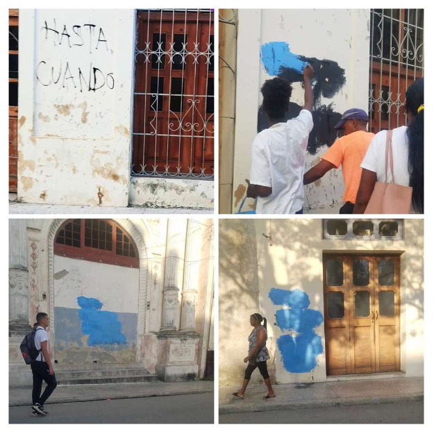 Fotos de las paredes donde pintó los carteles, luego de ser tapadas. Fuente: redes sociales.