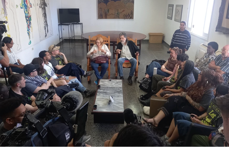 Encuentro entre participantes de la flotilla y funcionarios de Casa de las Américas.