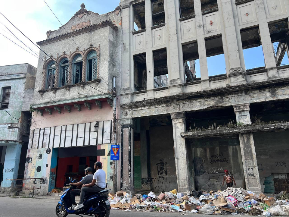 El cine Esmeralda junto a otro edificio ruinoso, Centro Habana (2025), Archivo ODC.