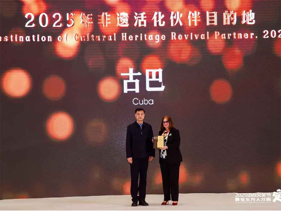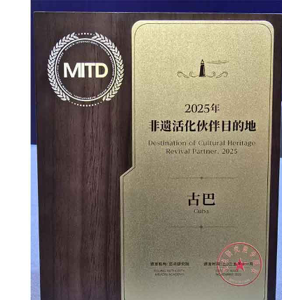 En noviembre de 2025, Cuba fue distinguida por el Instituto de Investigación Meadin de China con el premio “Destino Socio de Activación del Patrimonio Cultural Inmaterial 2025”, en reconocimiento a “sus esfuerzos de preservación y revitalización de su patrimonio cultural vivo”. Durante la ceremonia inaugural del Festival de Cultura y Turismo Meadin en Hangzhou, la consejera de Turismo de Cuba para Asia, Elizabeth Vela, enfatizó que Cuba es “uno de los destinos más singulares y fascinantes del Caribe”, y destacó “los atractivos culturales de la Isla: desde el mejor tabaco y café hasta un patrimonio cultural material e inmaterial”.
