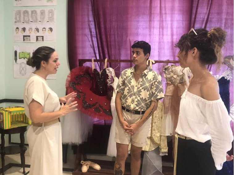 La viceministra de Cultura, Lizette Martínez Luzardo, conversa con estudiantes expositores. Fuente: Tribuna de La Habana (2025).
