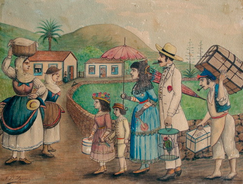 Retorno de Indianos (acuarela), Juan Bautista Fierro (1911). Fuente: BienMeSabe.org.
